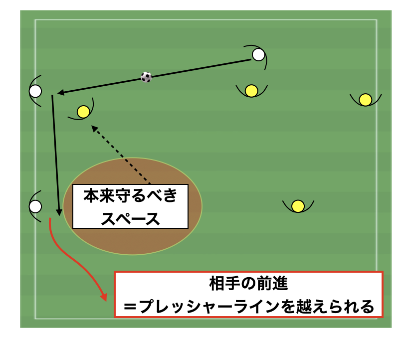 - 背後を使われ簡単に相手の前進を許す
