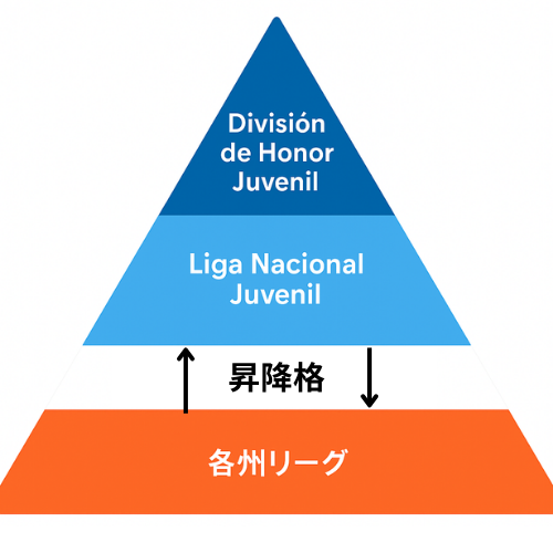 Juvenil はU19世代(2007・2008・2009年生まれ)を対象とし、División de Honor→Liga Nacional→州リーグというピラミッドで構成されます。今週末から開幕するシーズンは、多くのドラマを生むことでしょう。