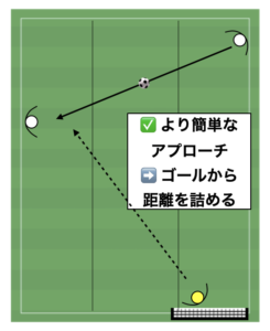 - 相手の逆足側へ誘導し、ボールを奪いやすくする。