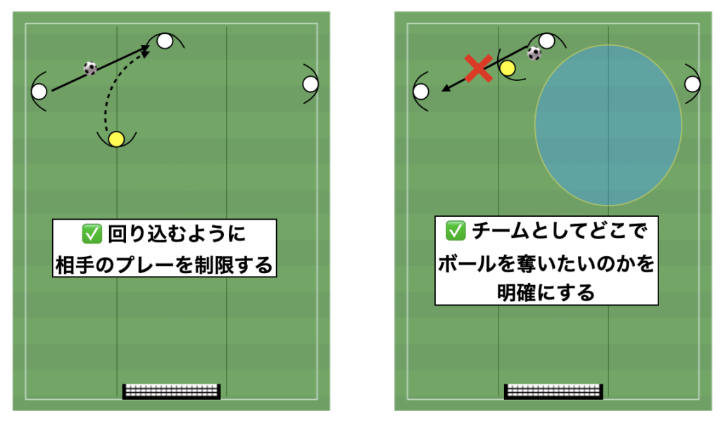 - チームとしてどこでボールを奪いたいか(場所と方法)を明確にする